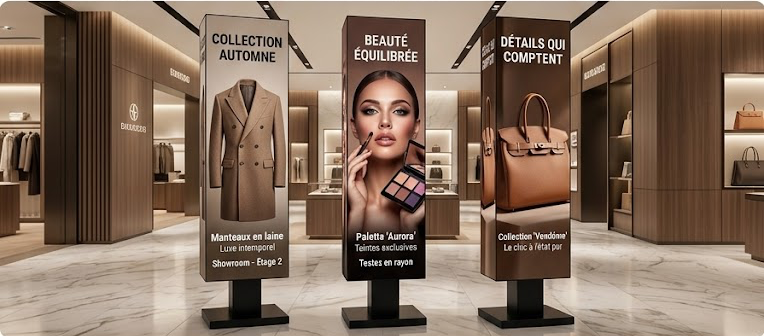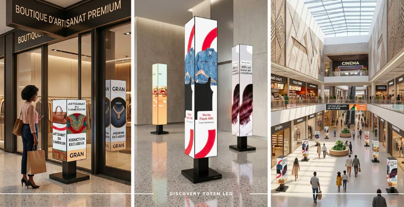 Hôtels, boutiques, galeries , centres commerciaux, restaurants & clubs — sublimez l'atmosphère avec un totem Discovery 360 signature.